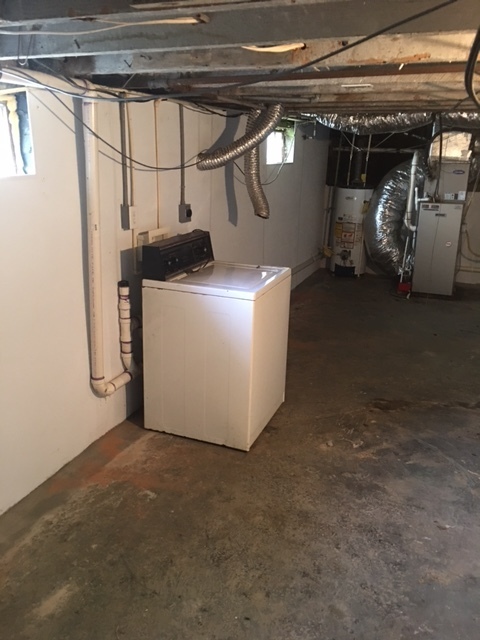 Stove/oven and new refrigerator included. A screened in porch opens to a fenced in back yard. The full, unfinished basement houses the washer and dryer hook ups.